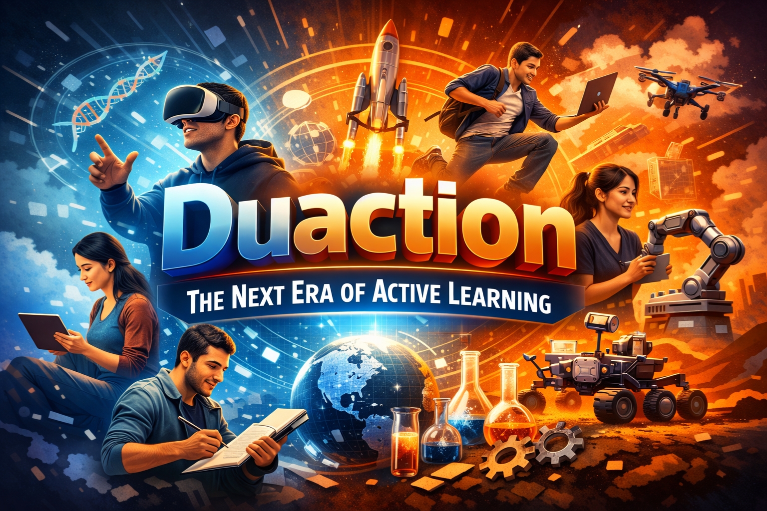 Duaction! Learners today demand faster ways to learn than traditional methods of rote learning, passive listening, and learning from books. Although these methods provide knowledge, they do not help build practical skills or learners’ confidence. Duaction is here to change the way we learn and embodies the hands-on practicality we need. It fuses learning with study and allows learners to build skills, tackle problems, and learn again in ways that are confident and practical in real life.